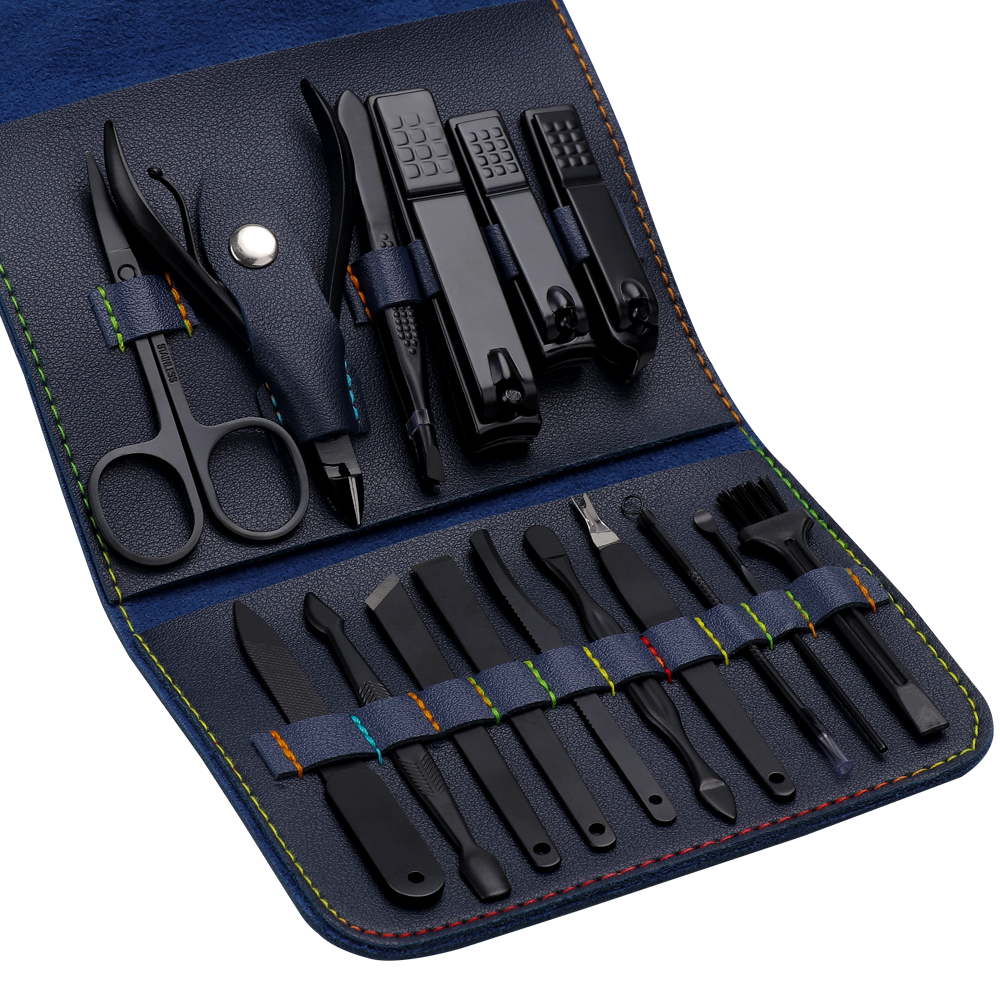 16 PCS Deep Blue PU Bag Full Function Manicure Set