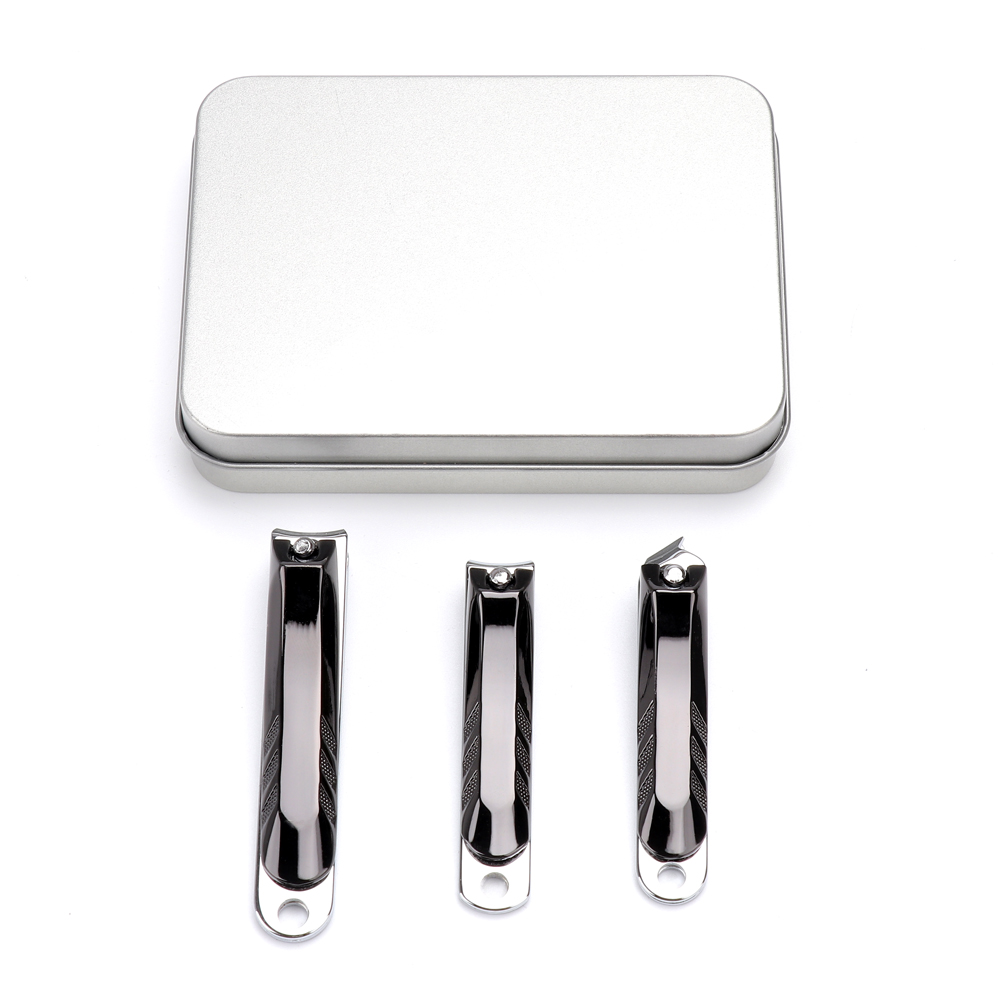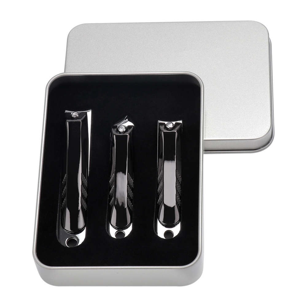 3 PCS Black Nail Clippers With Sliver Box