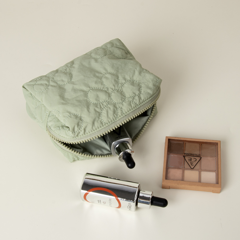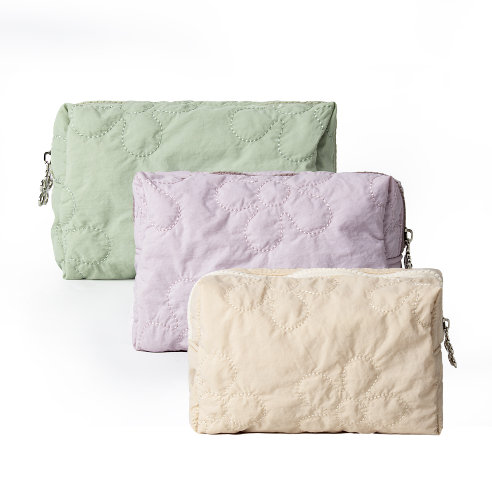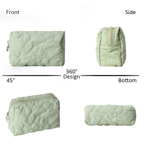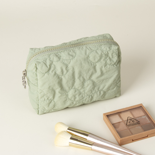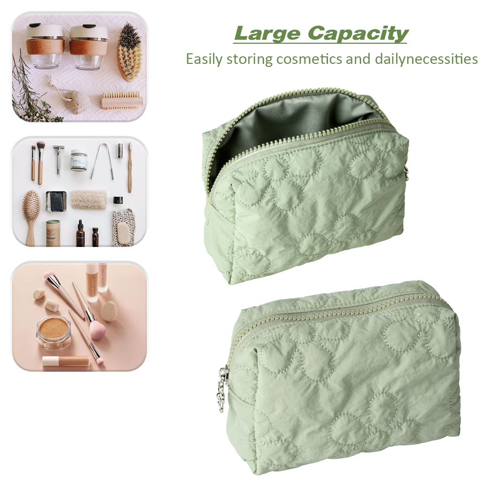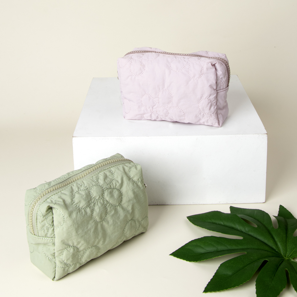 Quilted Flower Pattern Fabric Zipper Cosmetic Bag with Personalized Logo Skincare Cosmetic Pouch Cute Gift