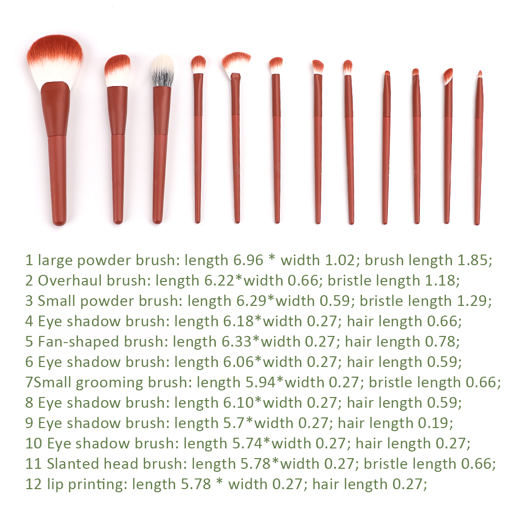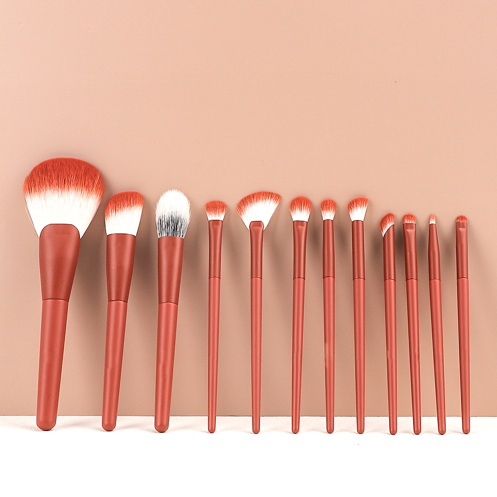 Scarlet Bright Red Dual Color Hair Makeup Brush 12 PCS Set