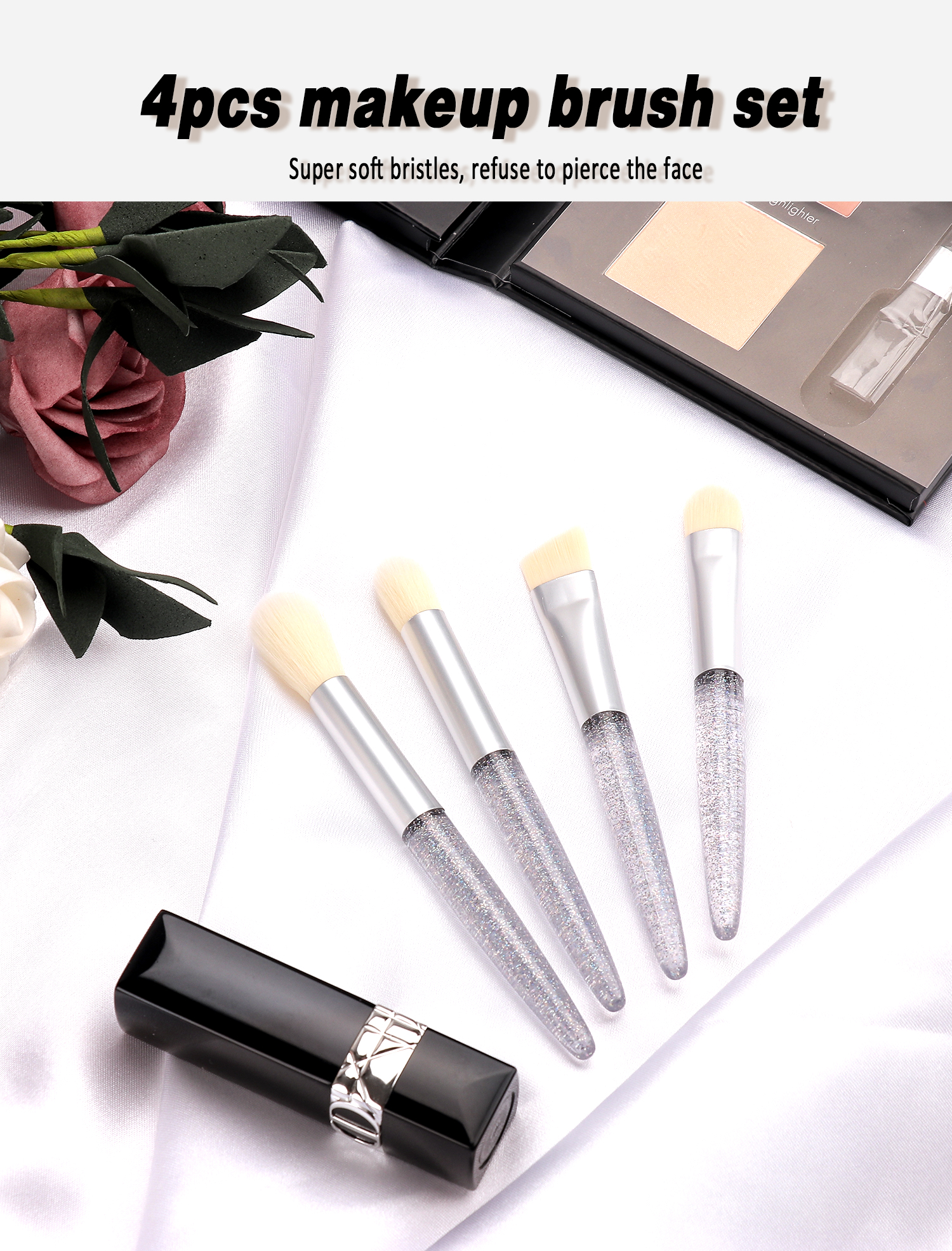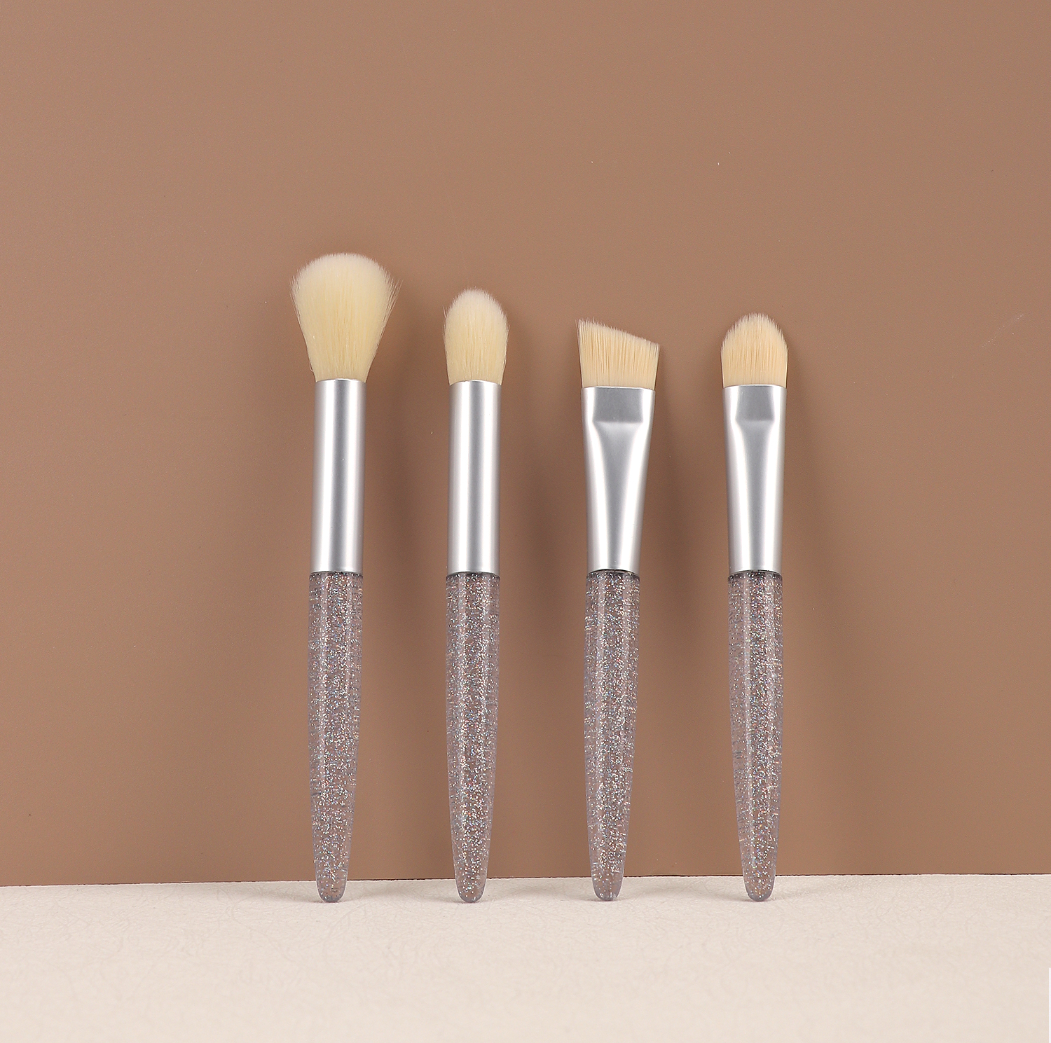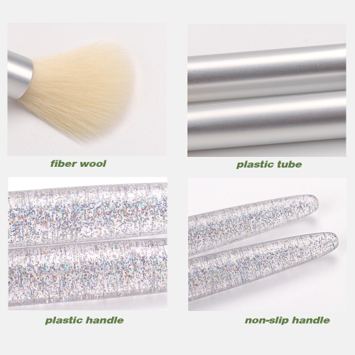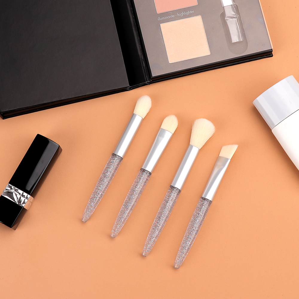 Silver Transparent Glitter Powder Handle Makeup brush 4 PCS Set